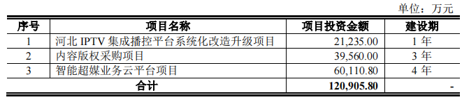 具体而言,本次募投项目中河北IPTV集成播控平台系统化改造升级项目的实施将进一步强化智能化内容运营,并实现高效的内容智能审核;筑就播控系统边界防护能力,加强网络管理手段,保障网络安全。内容版权采购项目的实施将有利于持续提升公司的内容竞争力,为公司业务长期开展带来良性循环。智能超媒业务云平台项目的实施将有利于培育平台型经济和打造区域新型主流媒体组织,提高企业创新能力与市场竞争力,培植新的业务增长点。