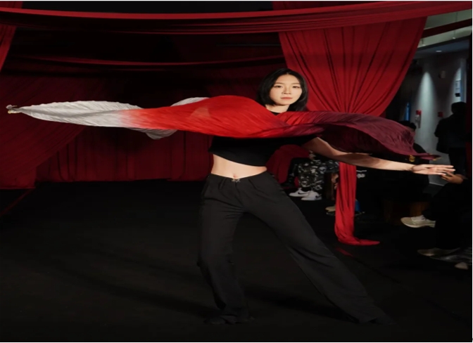在聚光灯交织的梦幻秀场,服装表演专业学生徐嘉奇宛如灵动星辰翩然而至。演绎舞蹈《缠》于秀场绽放光彩。