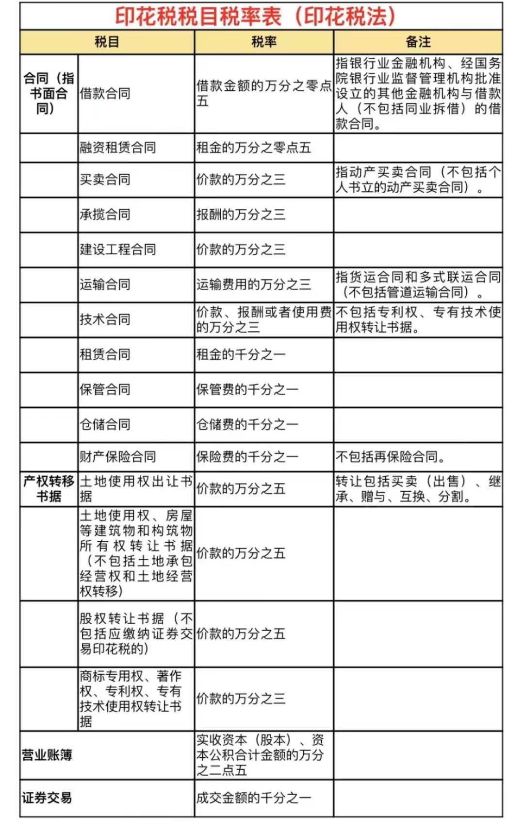 03其他印花税税率变化比较